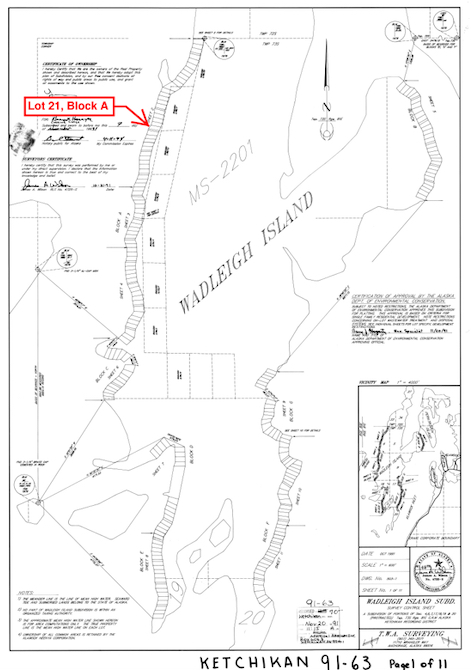 Lot 21 Block A (0.81 acres), on NorthWest Wadleigh Island. Undeveloped waterfront lot with old-growh timber. Greenbelt/Commom Area on southern boundary.